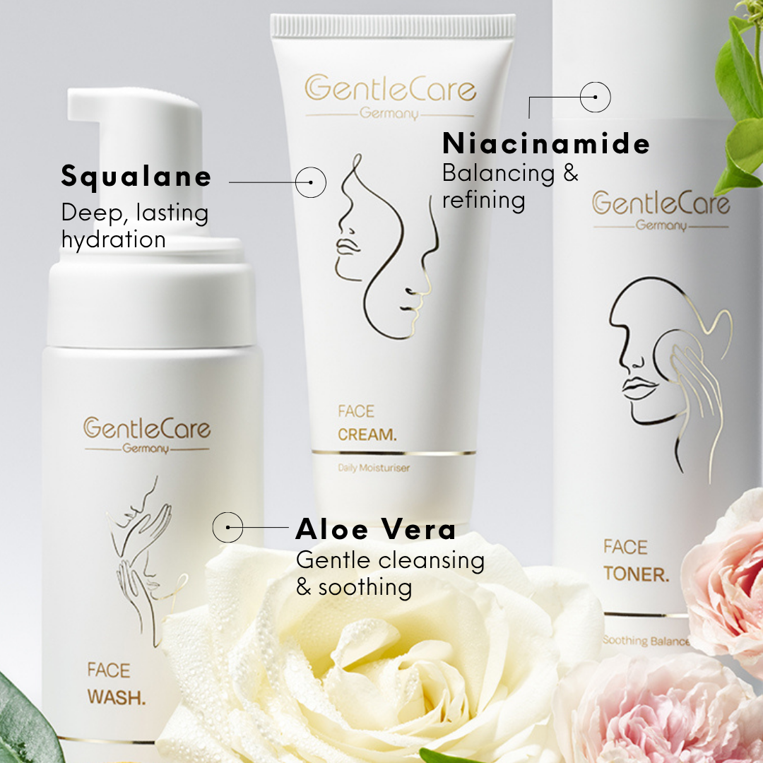 Aqua, Aloe Barbadensis Leaf Juice, Glycerin, Betaine, Niacinamide, Chamomilla Recutita Flower Water, Rosa Damascena Flower Water, Panthenol, Xanthan Gum, Allantoin, Calendula Officinalis Flower Extract, Camellia Sinensis Leaf Extract, Caprylyl Glycol, Lactic Acid, Sodium Hydroxide, Citric Acid, Ethylhexylglycerin, Phenoxyethanol, Sodium Benzoate, Potassium Sorbate, Parfum, Acetylcedrene, Dimethyl Phenethyl Acetate, Eugenyl Acetate.